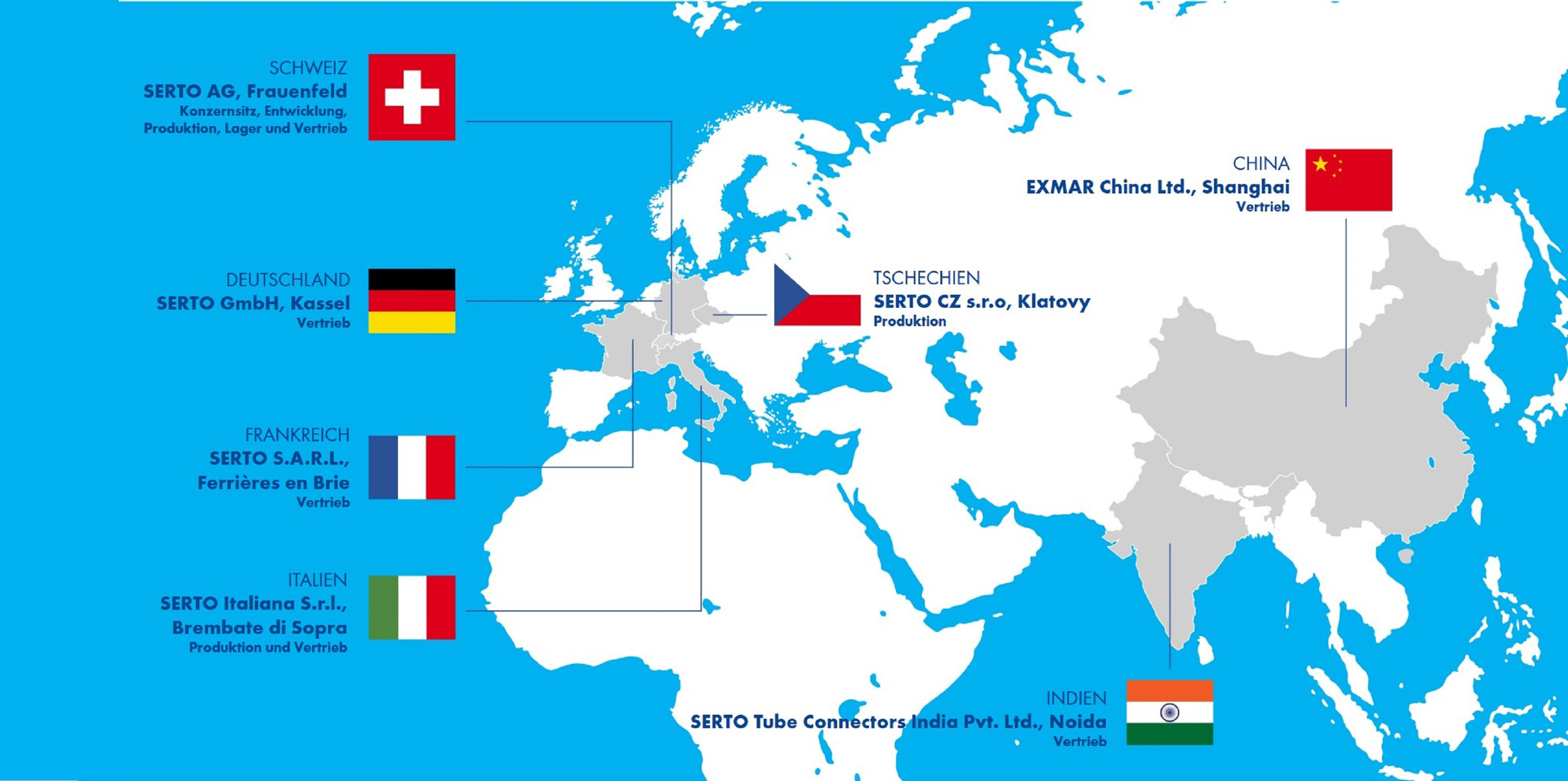 Die SERTO Group ist in Europa und Asien mit zahlreichen Standorten vertreten. In Ihrem Land ist keine Niederlassung? Gerne stehen Ihnen weltweit unsere Vertriebspartner zur Verfügung - kompetent und zuverlässig.